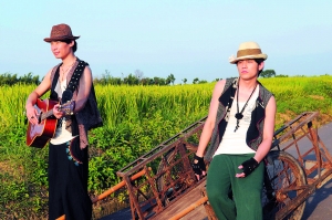 特地到鄉(xiāng)下取景的《稻香》MV,除了有綠油油的稻田,周董還坐在牛車上唱歌彈奏迎接夕陽(yáng),不過(guò)拉牛車的不是牛是工作人員,原因很實(shí)在:“為了保護(hù)動(dòng)物所以不用牛來(lái)拉車!辈贿^(guò)為了拍攝完美,牛車在鄉(xiāng)間小路來(lái)來(lái)回回拉了十?dāng)?shù)遍,沒(méi)有累倒牛,倒是把工作人員給累翻天。而周董穿的綠色褲裙以及剪裁獨(dú)特的上衣,是他之前在泰國(guó)拍廣告后帶回來(lái)的服裝,戴上草帽后走在鄉(xiāng)間田埂上別有一番風(fēng)味。(記者 葉毅)