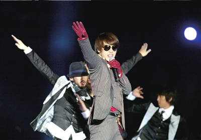 昨晚的演唱會嘉賓云集,舞臺設(shè)置也頗有陣勢,在中心舞臺的四周分設(shè)了6個舞臺。晚7點半,《龍的傳人》前奏響起,成龍身穿白衣?lián)趔镜菆,與所有的演出嘉賓合唱一首《龍的傳人》。
