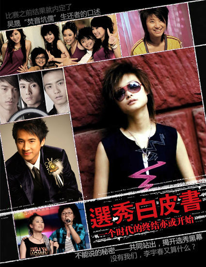 桑雪作為中國(guó)第一個(gè)奧運(yùn)冠軍并轉(zhuǎn)型歌手,出雜志后,也成為媒體焦點(diǎn),說(shuō)明大眾對(duì)于奧運(yùn)事件的熱衷程度。相反,對(duì)于中國(guó)第一本盤點(diǎn)娛樂(lè)圈年度大事件的《選秀白皮書》,文章中近年來(lái)娛樂(lè)圈領(lǐng)軍人物李宇春、張靚穎等都列入其中,反而在明星出版銷量中排名最后,充分說(shuō)明,大眾對(duì)于選秀事件的疲憊與麻木,大眾的眼睛需要綠色的屏障作保護(hù),人們需要的是新鮮的事物來(lái)刺激生活。