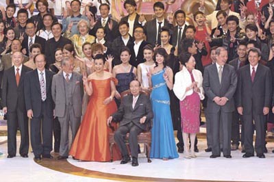 中新網(wǎng)11月20日電 無線40周年臺(tái)慶節(jié)目“萬千星輝賀臺(tái)慶”由百歲行政主席邵逸夫(六叔)率全臺(tái)逾百名藝員揭開序幕。昨日是六叔的百歲生日,因?yàn)樗甓嫉驼{(diào)過生日,故臺(tái)慶節(jié)目沒有特意安排向六叔祝賀生日,但有40名藝員為六叔唱生日歌,還有一些有祝壽意義的歌舞。