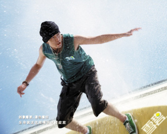 最近,周杰倫為拍攝新廣告,牽手3位跳水新星吳敏霞、王峰、陳若琳,上演了一幕“另類”跳水秀。這次周杰倫也有份參與廣告創(chuàng)意,例如片中一個(gè)池壁沖浪的鏡頭,完全沒有滑板經(jīng)驗(yàn)的他,在拍攝過程中居然可以擺出滑板碰鼻的專業(yè)動(dòng)作。不過說到跳水美態(tài),周杰倫自然比不上吳敏霞,她一出手便震撼全場(chǎng):干凈利落的轉(zhuǎn)身,如海豚般輕盈地一躍就完成整個(gè)拍攝。