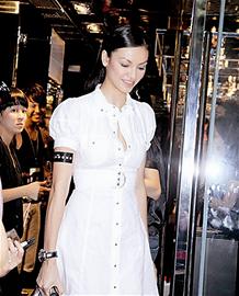 前日,關淑怡、Rosemary以性感裝出席某時裝品牌的開幕儀式,名模Rosemary走秀時,襯扣脫滑泄露春光,她卻毫不知情。 (林林)