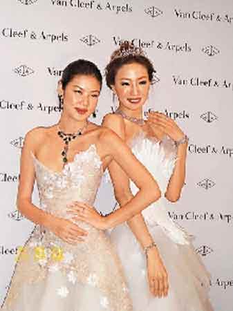 中新網(wǎng)5月23日電 據(jù)香港文匯報道,樂基兒和陳嘉容前晚齊齊穿起婚紗為一個珠寶品牌行走秀,樂基兒還戴上價值逾三千萬元的綠寶鉆飾,艷壓全場。
