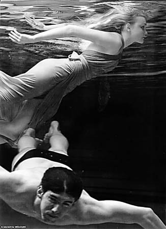 美國(guó)游泳天才菲爾普斯與名?_琳·特提妮共同為某雜志拍攝了一組水中寫真。兩人在水里演繹浪漫情調(diào)。
