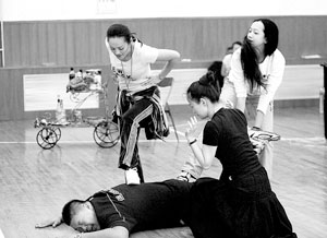 在昨晚的排練中,當寧靜劇中的老公到來后,面對五大三粗的丈夫,她一聲大吼:“快、快、快來幫忙,我老公最怕癢了,你們還愣著干嗎,快來一起制服他。”將女大廚潑辣的一面表現(xiàn)得恰到好處。(記者張寧)