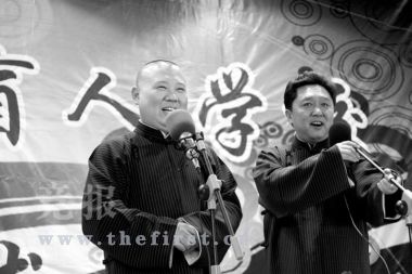 從窗戶望出去,能看到山,這種景致讓許多身處都市的人心動。但是,窗子邊的孩子們卻看不到這種景致,他們是北京市盲人學(xué)校的盲童。昨日,這些看不到美麗風(fēng)景的盲人孩子卻聽到了令人捧腹的相聲——郭德綱和搭檔于謙、師弟高峰等人帶來一場快意的演出。