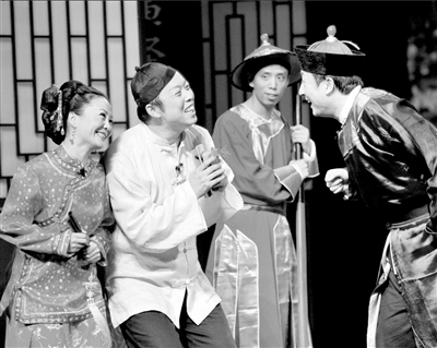 昨天,由相聲演員李志強、崔藝東、張凱主演的笑劇《我們的相聲瘋了》舉行了媒體見面會。該劇運用了傳統相聲、小品、舞蹈、歌唱、魔術、打快板、吹嗩吶等多種表演形式,春節(jié)前曾在解放軍歌劇院試演了三場,效果非常好。這出笑劇將于2月6日-9日在海淀劇院上演。