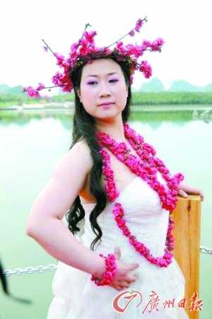 只見(jiàn)身穿白色塔形抹胸裙的芙蓉姐姐,對(duì)著鏡頭大擺POSE,胸前的桃花項(xiàng)鏈、手腕上的桃花手鐲以及粉色的桃花頭飾非常好看,只是芙蓉姐姐發(fā)福的身材,有些令人大跌眼鏡。
