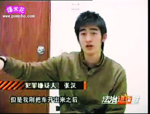 節(jié)目的字幕顯示,肇事者名叫“張漢”,這正是張翰在中戲就讀時使用的名字。而張翰在審訊室接受審問時也承認(rèn)了自己的過錯并描述事發(fā)經(jīng)過:“我只想讓他下去,我踩了三次剎車,我說‘你別拽我!’,我也怕他出事!彼麖(qiáng)調(diào),因為自己的情緒不佳才釀出事故:“因為當(dāng)時我情緒比較激動,有許多下意識的行為,當(dāng)時沒有想那么多,但是我剛把車子開出來(指把警察的手甩出窗外之后),就意識到事情鬧大了!