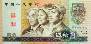 從網(wǎng)上曝光的專輯封面看,其設(shè)計(jì)與舊版50元人民幣十分類似。專輯封面上,雪村頭戴煉鋼工人眼鏡,和一個(gè)頭戴毛巾的胖男人、一個(gè)戴著眼鏡,科學(xué)家模樣的人并排出現(xiàn)在正中間。這一設(shè)計(jì)與舊版50元人民幣正面主景工人、農(nóng)民、知識(shí)分子頭像極其相似。50元人民幣左上角“中國人民銀行”的字樣在專輯封面上被改成了“雪村音樂評書”,右上角阿拉伯?dāng)?shù)字“50”的字樣被改成了專輯名《慶功酒》。