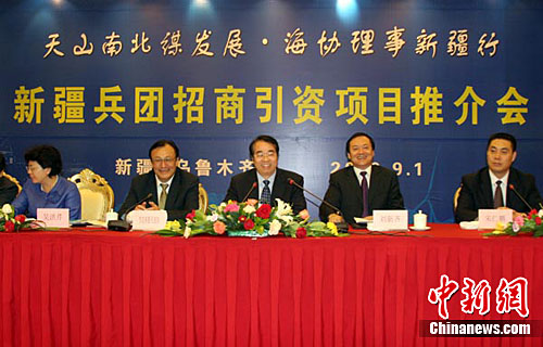 新疆生產(chǎn)建設(shè)兵團(tuán)副司令員劉新齊向參加活動的海外僑領(lǐng)介紹了新疆生產(chǎn)建設(shè)兵團(tuán)的歷史,兵團(tuán)副政委雪克來提·扎克爾介紹了新疆兵團(tuán)的經(jīng)濟(jì)社會發(fā)展?fàn)顩r。據(jù)介紹,50多年來,新疆兵團(tuán)依托大農(nóng)業(yè)優(yōu)勢和新疆礦產(chǎn)資源優(yōu)勢,大力建設(shè)農(nóng)副產(chǎn)品生產(chǎn)加工基地和優(yōu)勢礦產(chǎn)資源開發(fā)利用基地,大力實(shí)施優(yōu)勢資源轉(zhuǎn)換、開放帶動、科教興兵團(tuán)和人才強(qiáng)兵團(tuán),總體實(shí)力明顯增強(qiáng)。2009年,新疆兵團(tuán)實(shí)現(xiàn)生產(chǎn)總值610.69億元人民幣,人均生產(chǎn)總值達(dá)到23734元。
