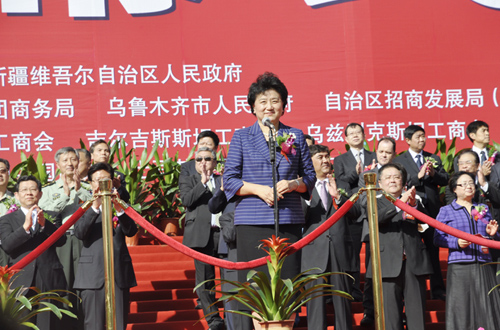 開幕式上中共中央政治局委員,國務(wù)委員劉延?xùn)|宣布,烏洽會將從明年開始升格為中國亞歐博覽會,并且宣布本屆烏洽會開幕。