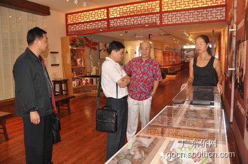 18日下午,訪問團(tuán)先后拜訪了南加州傳統(tǒng)社團(tuán)岡州會(huì)館、寧陽會(huì)館和寧僑公會(huì),王明惠詳細(xì)介紹了廣東華僑博物館的建設(shè)發(fā)展情況和廣東華僑歷史陳列主題展,呼吁洛杉磯華僑華人積極向廣東華僑博物館捐贈(zèng)文物文獻(xiàn)。此外,訪問團(tuán)拜訪了美國(guó)洛杉磯華人歷史學(xué)會(huì),與該會(huì)交流探討在廣東華僑博物館聯(lián)合舉辦洛杉磯華僑歷史展覽的議題。訪問團(tuán)還參觀考察了華美博物館,聽取館長(zhǎng)黃寶蓮介紹華僑歷史展覽、陳展設(shè)計(jì)、文物保護(hù)等方面的經(jīng)驗(yàn),就進(jìn)一步加強(qiáng)兩館間的合作深入交流。晚上,中華會(huì)館和寧陽會(huì)館宴請(qǐng)?jiān)L問團(tuán)一行,中華會(huì)館主席陳建邦、岡州會(huì)館董事長(zhǎng)蔣石穩(wěn)、寧陽會(huì)館主席黃偉林等出席宴會(huì)。