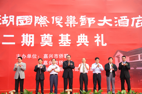 中國僑聯(lián)副主席、浙江省僑聯(lián)主席王成云、嘉興市委常委、市紀(jì)委書記馮志禮等領(lǐng)導(dǎo)以及市級(jí)有關(guān)部門、南湖區(qū)委、區(qū)政府、南湖國際俱樂部二期項(xiàng)目投資方、建設(shè)單位、市多家媒體等近100人出席了奠基儀式。