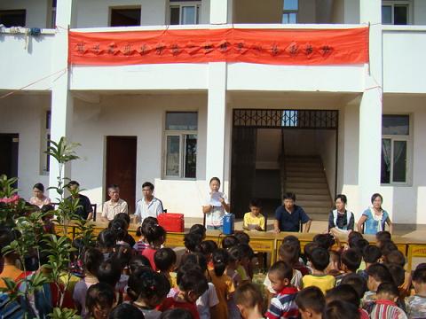中新網(wǎng)10月19日電 為響應中國僑聯(lián)關于動員海內(nèi)外僑界力量,積極援建北川中學的號召,弘揚僑愛心小學“幫助別人,愛心無限”的優(yōu)良傳統(tǒng),6月11日,江西省僑聯(lián)在泰和縣石山鄉(xiāng)“輝芬僑心小學”落成典禮上,拉開了全省僑心學校開展“我為北川中學添一塊磚”的愛心傳遞活動的序幕,前來參加慶典的領導嘉賓與輝芬僑心小學的全體師生一道為援建北川中學奉獻自己的一片愛心。