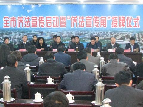 會(huì)議對(duì)全市僑法宣傳工作進(jìn)行了部署,并向市中區(qū)榮華里社區(qū)和光明園社區(qū)進(jìn)行了“全國(guó)僑務(wù)系統(tǒng)五五普法僑法宣傳角”授牌。