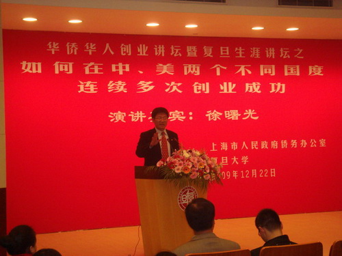 中新網(wǎng)12月31日電 據(jù)上海市僑辦消息,12月22日晚上,上海市復(fù)旦大學(xué)光華樓102報告廳里座無虛席,由上海市僑辦與復(fù)旦大學(xué)共同主辦的“華僑華人創(chuàng)業(yè)講壇”第四講活動舉行。