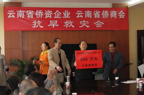云南省僑資企業(yè)界和云南省僑商會會員企業(yè)深感企業(yè)扎根于云南,服務(wù)于各界,得益于百姓,自當(dāng)奉獻(xiàn)于社會。經(jīng)商議,云南省部分僑資企業(yè)和云南省僑商會部分會員企業(yè)于2010年2月22日在云南省僑辦舉行了云南省僑資企業(yè)、云南省僑商會“抗旱救災(zāi)獻(xiàn)愛心募捐”活動。