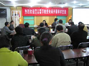 交流會上,首先由西口敏宏教授做《超越世界的社會網絡和中國溫州的巨變》的報告,以溫州巨變?yōu)槔龑σ?guī)則網絡與小世界網絡進行了詳細的講解與闡述,并對如何利用小世界網絡研究當前的移民問題做了探討。辻田教授介紹日本的中國福建省勞動移民情況(以福清為例),通過一系列詳實的數(shù)據(jù)顯示了旅日閩僑的一些基本狀況,并提到,當前日本老齡化嚴重,如何接受外來勞動力的問題在日本已普受關注。