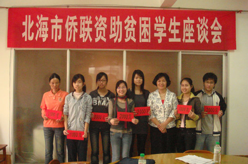 北海市僑聯(lián)受廣西華僑愛心基金會的委托發(fā)放助學(xué)金,分別資助了陳喜珍、許冰冰、冼宙洋3名貧困大學(xué)生每人2000元和徐歡歡、黃棟雪、容培珠、黎就欣等4名貧困中學(xué)生每人1000元,共計10000元。