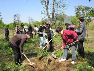 福建省僑聯(lián)副主席楊崢嶸、謝小建、福州市人大副主任陳樹(shù)雄、市政協(xié)副主席陳震宙、福州市僑聯(lián)黨組書(shū)記、主席藍(lán)桂蘭、福州市僑聯(lián)副主席、鼓樓區(qū)僑聯(lián)主席李盛玉、永泰縣僑聯(lián)黨支部書(shū)記汪秀錦等領(lǐng)導(dǎo)與青年委員和僑聯(lián)機(jī)關(guān)干部共同栽下近百株的桃樹(shù)和桂花樹(shù),并細(xì)心地為每棵樹(shù)苗系上簽有自己名字的綠葉圖形標(biāo)識(shí),寓意僑聯(lián)事業(yè)與樹(shù)苗一同成長(zhǎng)壯大、煥發(fā)生機(jī)活力。