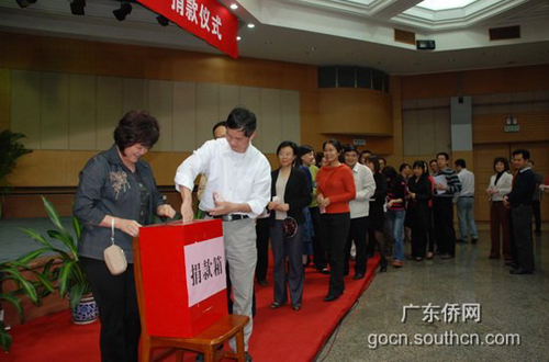 中新網(wǎng)4月26日電 據(jù)廣東僑網(wǎng)消息,4月26日,廣東省僑辦在機(jī)關(guān)二樓禮堂舉行“送溫暖,獻(xiàn)愛心” 捐款儀式,廣東省僑辦主任吳銳成率班子成員及全體干部職工參加捐款活動(dòng)并帶頭捐款,機(jī)關(guān)干部職工及直屬單位共向?yàn)?zāi)區(qū)捐款40萬元。