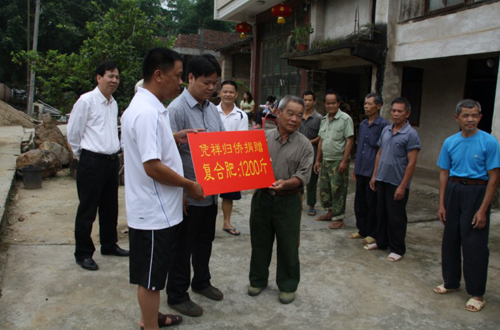 平而村地處中越邊境,有散居歸僑15戶。憑祥市今年遭遇罕見(jiàn)的特大干旱,農(nóng)民的春耕生產(chǎn)受到嚴(yán)重的影響。為了幫助散居在農(nóng)村的歸僑開(kāi)展春耕生產(chǎn),憑祥市僑聯(lián)在僑界中廣泛開(kāi)展“一幫一”、“多幫一”的“僑幫僑”支農(nóng)惠農(nóng)活動(dòng),得到僑資企業(yè)的大力支持,他們慷慨解襄,出資為農(nóng)村的歸僑購(gòu)買(mǎi)了農(nóng)用肥料,幫助他們解決生產(chǎn)上的困難。此次憑祥市僑聯(lián)專(zhuān)程到平而村為歸僑送去價(jià)值2000元肥料。(周德林)