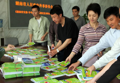 12日《實(shí)施辦法》集中宣傳日上,省外僑辦官員章定國、郝去吾、符華興、黎里溪、劉曉越、龐力平等人和全體干部職工及下屬單位代表70余人每人領(lǐng)取了一份《實(shí)施辦法》,并進(jìn)行了集中學(xué)習(xí)。