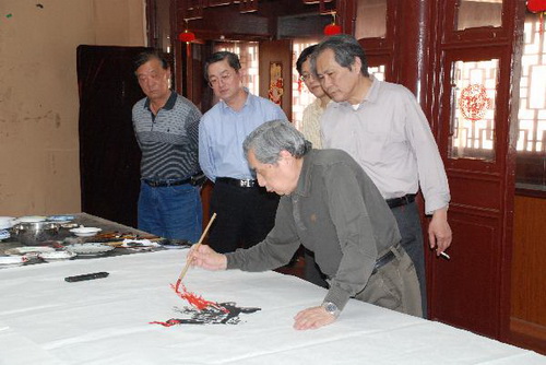 中新網(wǎng)5月19日電 據(jù)上海市僑辦消息,5月12日,著名畫(huà)家劉國(guó)松、徐昌酩應(yīng)邀赴大境閣與上海市華僑書(shū)畫(huà)院部分書(shū)畫(huà)家進(jìn)行藝術(shù)創(chuàng)作與交流。
