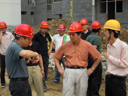 在中國僑聯(lián)援建北川中學(xué)指揮部指揮長(zhǎng)劉奇、副指揮長(zhǎng)王厚增、羅顯禮、蔣蓓,北川縣副縣長(zhǎng)周福蘭等人的陪同下,喬衛(wèi)深入施工現(xiàn)場(chǎng),逐樓詳細(xì)查看了施工建設(shè)情況,并召開會(huì)議聽取援建指揮部、設(shè)計(jì)、施工、監(jiān)理和審計(jì)等參建單位的工作匯報(bào),協(xié)調(diào)了有關(guān)問題。