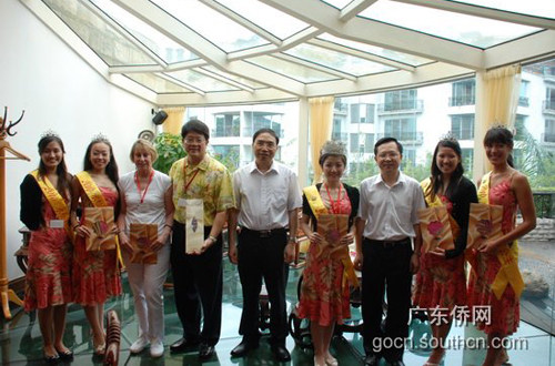 中新網(wǎng)6月12日電 據(jù)廣東僑網(wǎng)消息,6月11日上午,廣東省僑辦副主任林琳、副主任鄭建民在省僑辦會(huì)見了美國夏威夷州長(zhǎng)林格及夏威夷中華總商會(huì)第61屆水仙花皇后友好代表團(tuán)一行35人。