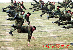 解放軍駐澳門部隊(duì)?wèi)?zhàn)士表演格斗術(shù)。